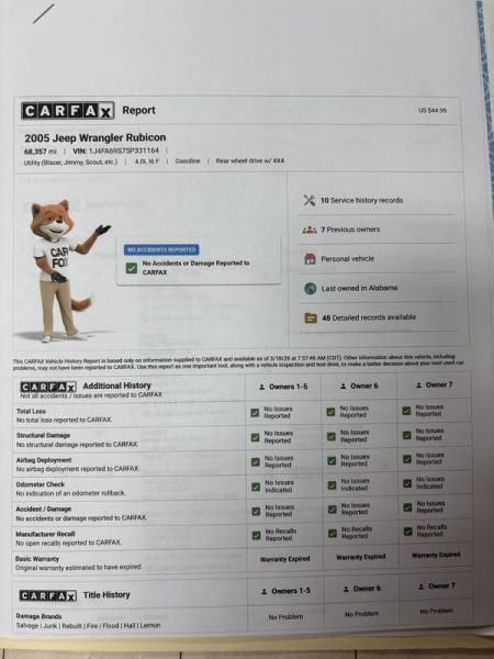 You are looking at this "TOP OF THE LINE" JEEP WRANGLER RUBICON, which means you are a JEEP person or would like to be. What JEEP person would not like this one?!! To go along with exceptionally low miles, it is pristine in every way. Come check it out, test drive it. If you don't agree with our assessment, let us know. COME TRADE WITH US; WHERE YOU LEAVE WITH A SMILE AND A "FULL" GAS TANK!!