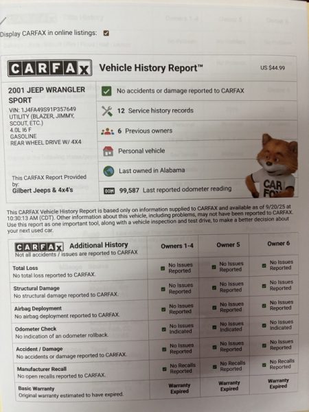 LOW MILES, CLEAN AND NEVER ABUSED! This JEEP has it all. Nice smooth engine and running gear with no known issues. It drives good with no wobbles or shakes. NO RUST! COME TRADE WITH US; WHERE YOU LEAVE WITH A SMILE AND A "FULL" GAS TANK!