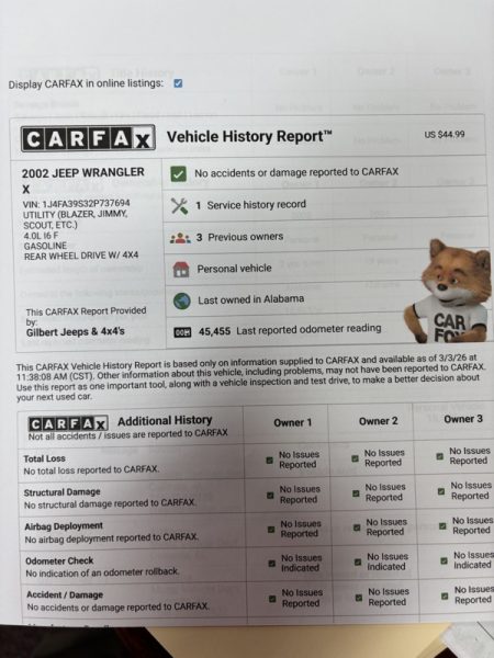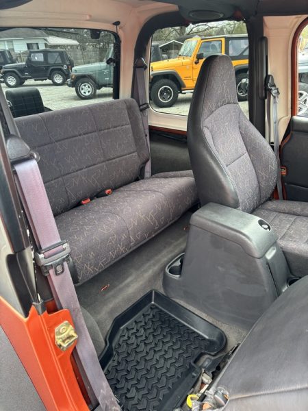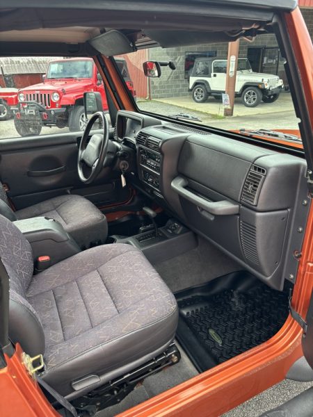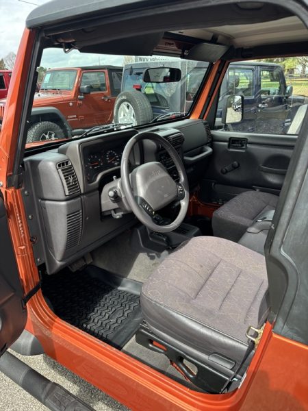 "PRISTINE" JEEP WRANGLER TJ! Loving the color!! This JEEP remains factory equipped all the way! Excellent paint and interior, obviously kept inside. It runs and drives as would be expected...like new! No flaws to report on this one! Come check it out; if you're not as impressed with it as we are...let us know. COME TRADE WITH US; WHERE YOU LEAVE WITH A SMILE AND A "FULL" GAS TANK!