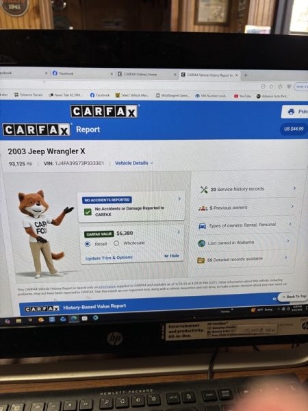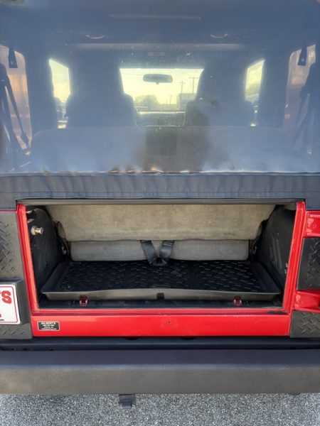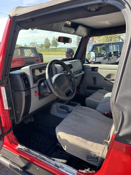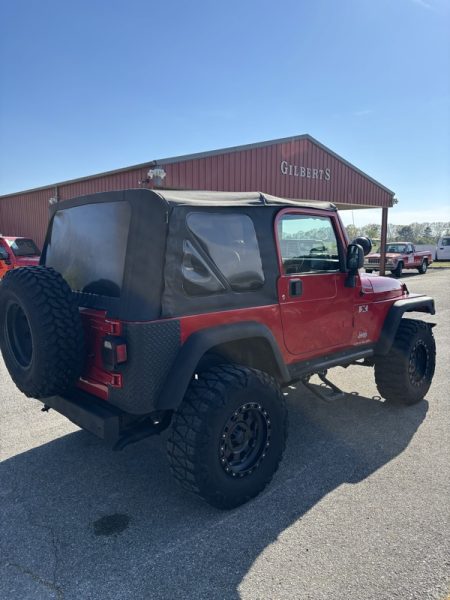 SOLID JEEP WRANGLER, with no rust or major dents. The interior is still intact, looking better than would be expected. The miles are high...but it is a JEEP! It runs and drives out well. The soft top and tires are good. COME TRADE WITH US; WHERE YOU LEAVE WITH A SMILE AND A "FULL" GAS TANK!
